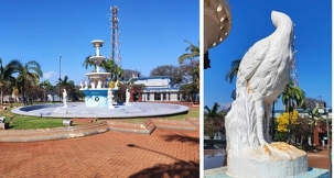 Chafariz da praça Getúlio Vargas vandalizado e sem funcionar há meses.