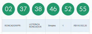 Ninguém acertou as seis dezenas da Mega Sena sorteadas nesta quinta-feira. Assim, o prêmio fica acumulado e deve chegar a R$ 28 milhões no próximo sorteio, neste sábado. A quina teve apenas 10 apostas ganhadoras, das quais apenas uma é do Paraná, feita na lotérica Roncador, em Roncador. Prêmio da quina? R$ 110,5 mil.