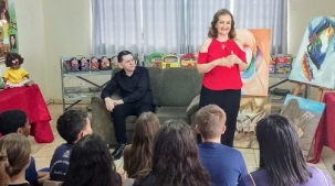 Os escritores Giselta Veiga e Edson Martins participaram nesta sexta-feira de encontros interativos com estudantes no programa "Escritores na Biblioteca", na Biblioteca Cidadã de Farol. Martins é ex-prefeito do município. A programação foi promovida pela Secretaria Municipal de Educação, Esporte e Cultura, envolvendo turmas da escola municipal Casimiro de Abreu e do colégio estadual Cultura Universal.