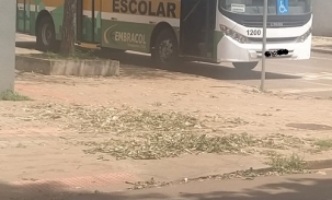 “Depois de três dias da chuva, continua na frente da escola Gurilândia, uma quantidade tamanha de folhas. Ninguém da zeladoria se dispôs a varrer”.