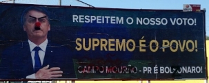 Pelo menos dois dos outdoors pró-presidente Jair Bolsonaro, em Campo Mourão, foram pichados. O presidente ganhou bigodinho, novas sobrancelhas e nariz de palhaço. A frase "Campo Mourão é Bolsonaro" também foi rabiscada.