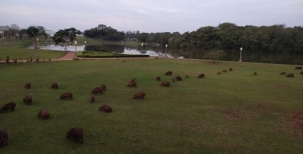 O Parque do Lago, de Campo Mourão, segue fechado para o público. Não para as capivaras. Elas seguem por lá, mas mantendo o distanciamento social muito melhor que muita gente por aí...