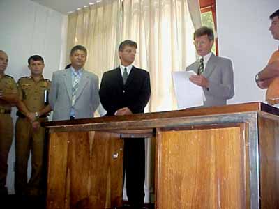 Essa deu ontem na “Folha de Londrina”, com foto e tudo. O novo delegado chefe da 16a SDP, Antônio Brandão Neto, foi empossado num gabinete sem móveis. Os que existiam eram propriedade do ex-delegado Roberval Butaccini, que foi embora e levou tudo. Ficou só o cumputador que chegou no final do ano passado. Para a salona não ficar vazia durante a cerimônia de posse, colocaram uma escrivaninha velha no meio da sala. Tão velha que nem a carceragem quer aquilo. Brandão ainda amenizou. Disse que isso é só um detalhe e que dá-se um jeito. Além do mais, tendo o computador para acessar a Boca Santa já é alguma coisa...