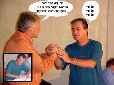 O médico Moacir Porciuncula assinou ontem à noite a ficha de filiação no PSDB em reunião festiva dos tucanos com direito a churrasco, cerveja e convidados especiais. Cinco vereadores – Kehl, Verci, Juvenal, Salvador e Geraldinho – e diversos presidentes de associações de moradores participaram do evento. O deputado Nélson Tureck disse que ainda não é hora de se falar em candidatura a prefeito e que Porciuncula veio para fortalecer o partido. O médico, por sua vez, afirmou que Tureck é o seu líder maior e que vai fazer no partido o que o deputado mandar. Mas os dois, que já foram adversários derrotados por Tauillo Tezelli e aliados do prefeito, não escondem: estão se unindo para tentar pegar a prefeitura em 2005. É, já que, isolados, não conseguiram...
