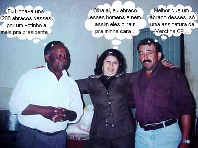 As sequelas deixadas pela eleição da mesa diretora da Câmara de Campo Mourão seguem mais vivas do que nunca. A vereadora Maria Verci Ribeiro insiste em deixar a sala da bancada do PSL. Conta que após a votação os “colegas” Geraldinho Sacramento e Isidoro Moraes nem olham mais pra cara dela. Motivo? Verci votou em Izael Skowronski, apesar de Geraldinho ter sido candidato. É por isso que Verci está indo para a sala do PPS, apesar de jurar que não irá mudar de partido. O PPS, por sua vez, cedeu um cantinho, mas tenta uma filiaçãozinha em troca. Enquanto isso, o PSL se mexe. Isidoro já foi até jantar na casa de Verci só para pedir a ela que repense essa decisão de deixar a sala do partido. Por enquanto, porém, valeu só pela jantinha. E pensar que até agora esses dias eles tiravam fotos abraçadinhos...