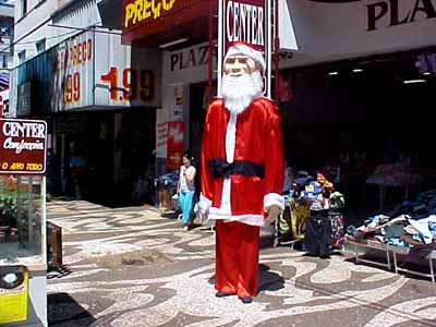 O Natal é hoje e, a esta altura do campeonato, o Papai Noel já chegou e entregou os presentes para a criançada. Durante os últimos dias, no entanto, o que mais se viu por Campo Mourão foram papais noéis esquisitos. No calçadão, tinha um com mais de três metros de altura, com mãos enormes, mas pernas curtinhas (foto). Na praça São José, outro exatamente ao contrário: as pernas de pau super compridas, mas o corpo normal. Papai Noel magrinho, então, sem barriga sem nada, era o que mais se via por aí. Isso sem contar aqueles tão mal feitos que assuntam até os adultos. Depois, a criançada de desencanta e ninguém sabe por quê...