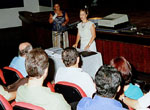 Quem prestou contas ontem de manhã no Teatro Municipal foi a Fundação Cultural. E lá foi a diretora Edilaine de Castro com sua fala a lá Fidel, sem parar (foto). O prefeito Tauillo Tezelli também falou e, para não perder o costume, criticou Nélson Tureck. Disse que o deputado não se preocupa com as reivindicações da comunidade. Tudo sem dizer o nome dele, como sempre. Cá entre nós, essa estratégia não parece que vem dando certo, parece?...