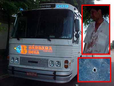 Mais um assalto a ônibus de sacoleiros na região. A novidade desta vez é que a abordagem dos ladrões aconteceu no anel viário de Campo Mourão (e você dizendo que ele não servia pra nada!). E foram dois ônibus de uma vez. Um deles de Belo Horizonte, cujo motorista ficou ferido pelos estilhaços do vidro quebrado com tiro que passou raspando sua cabeça (destaques). O pessoal do outro ônibus, de São Paulo, se irritou ao ao encontrar a delegacia fechadas às 7h e foi embora sem registrar o caso. O esquema foi o mesmo de sempre: bando se disfarça de Polícia Civil e rouba um caminhão. Com ele, fecha a rodovia e pára os ônibus. “Limpa” os passageiros e dá no pé. A própria polícia diz que se trata da quadrilha dos irmãos Schorgi, de Pitanga. Ah, mas se sabem quem é e onde moram, por que não os prendem?...