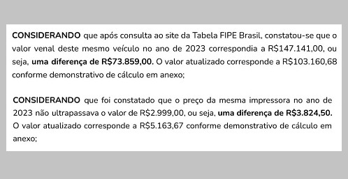 Somente pelo ônibus a diferença seria de R$ 73,8 mil, o que atualizado daria R$ 103,1 mil.
