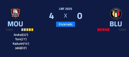Campo Mourão goleou o Blumenau este domingo pela Liga Nacional de Futsal.
