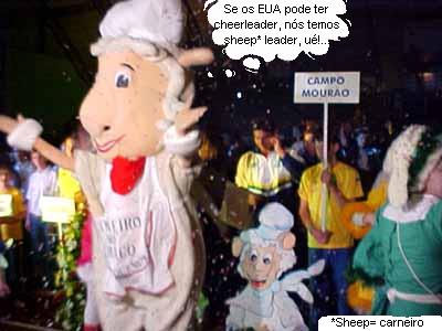 Olha aí mais uma cena da cerimônia de abertura da fase final dos 17o Jogos da Juventude do Paraná (Jojup´s), na sexta-feira à noite. E dê-lhe carneiro. Tinha carneiro grandão e carneirinho pequenininho. Tem gente que gosta. Tem gente que adora. Mas há quem diga que essa carneirada já está enchendo. Gosto é gosto. E cá entre nós: se nos Jojup´s existissem as modalidades de pulo no buraco e berro à distância, ah!!!...