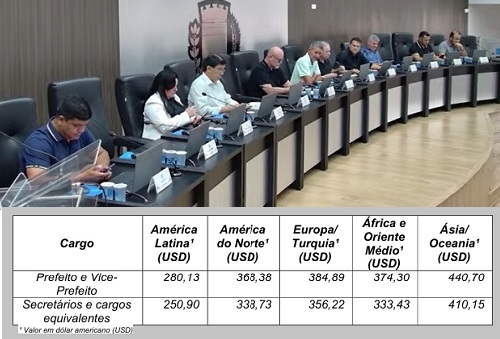 Para o prefeito, as diárias mais baratas são para a América Latina – US$ 280,12 – e as mais caras para a Ásia e Oceania – US$ 440,70.