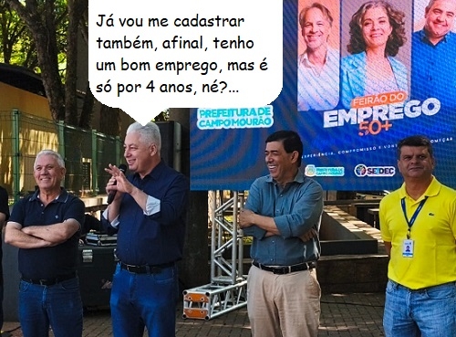 O clic é desta quarta-feira, durante o Feirão 50+, promovido pela Secretaria de Inovação e Desenvolvimento Econômico, por meio da Agência do Trabalhador, em parceria com 23 empresas de Campo Mourão. O objetivo é ajudar quem já passou dos 50 anos a conseguir um emprego. O prefeito Douglas Fabrício, que tem 56, participou da abertura do evento.