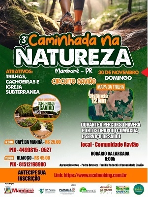 Acontece neste domingo (8h) a 3ª Caminhada na Natureza de Mamborê.