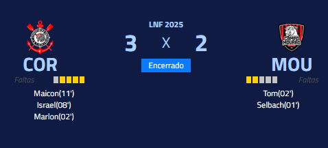 O Corinthians virou para 3 a 2, nesta quinta-feira, em São Paulo, e ficou com a vaga na final da Liga Nacional de Futsal.