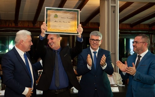 Teve sessão solene da Câmara de Campo Mourão nesta quinta-feira à noite. Foi no Recanto do Criador para a entrega do título de Cidadania Benemérita para Márcio Nelson Cruz da Silva, do Buffet Mundial. Ele recebeu a homenagem das mãos do prefeito Douglas Fabrício e dos vereadores autores da proposição – Edilson Martins e Marcio Berbet. Outros três vereadores participaram da sessão.