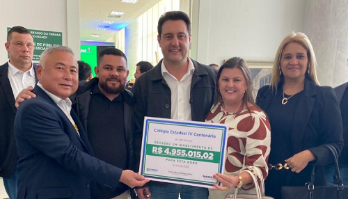 O governo do Estado anunciou nesta terça-feira, em evento realizado no Palácio Iguaçu, um investimento de cerca de R$ 132 milhões para a reformas em 94 escolas estaduais de 73 municípios. E sabe qual a escola que mais recebeu recursos? O colégio Quarto Centenário, de Quarto Centenário. São R$ 4,9 milhões em obras que já foram iniciadas. O prefeito Akio Abe esteve presente com direito a foto com o governador.