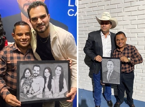 O cantor Luciano Camargo fez nesta quarta-feira o show de encerramento da 39ª Expomam, no dia em que Mamborê completou 65 anos. E olha quem foi lá e presenteou o músico com um desenho da família. Ele, o “recepcionista oficial” de Campo Mourão, Magnum Alves. Aproveitou e também entregou um desenho ao prefeito Sebastião Martinez.