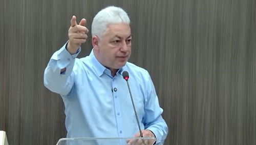 Eraldo Teodoro (PSD), vereador em Campo Mourão, durante o discurso de posse (pela quarta vez) na Câmara Municipal; neste sábado.