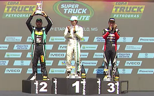 O piloto Pedro Perdoncini, de Campo Mourão, subiu duas vezes ao pódio neste domingo, na sétima etapa da Copa Truck, disputada em Curvelo/MG. Ele foi 2º colocado na corrida 1 e 5º na corrida 2. Com os resultados, o mourãoense se manteve na liderança da categoria Elite. A outra piloto de Campo Mourão, Thaline Chicoski, não completou a corrida 1 e ficou em 10.o na corrida 2. A Copa Truck volta nos dias 18 e 19 de outubro, em Londrina. Será a penúltima etapa.
