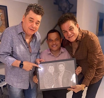 A dupla César & Paulinho esteve em Campo Mourão neste sábado. Fez show corporativo no Mourão Garden. Quem foi fazer a recepção dos sertanejos? Magnum Alves, claro, o “recepcionista oficial” de Campo Mourão. Como de costume, levou de presente um desenho dos cantores feito por ele.