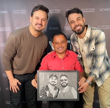 E adivinha quem esteve com a dupla Clayton & Romário? Ele, claro, o “recepcionista oficial” de Campo Mourão, Magnum Alves. O aniversário era do município, mas os sertanejos também ganharam presente: um desenho feito por Magnum.