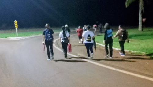 Mesmo com chuva, cerca de 100 católicos de Farol e cidades vizinhos participaram da 9ª Caminhada Noturna de Nossa Senhora Aparecida, na madrugada deste domingo. Os peregrinos fizeram o percurso de 27 km desde a paróquia Santo Antônio, em Farol, até o Santuário Nossa Senhora Aparecida, em Campo Mourão. A prefeitura cedeu uma ambulância para acompanhar o grupo e ônibus para o retorno.