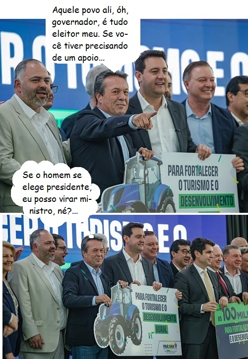 Os cliques são desta terça-feira, quando o governo do Estado anunciou R$ 100 milhões para 27 municípios da região de Curitiba. O dinheiro vem da Seab para a compra de caminhões e máquinas para manutenção de estradas rurais. O secretário Marcio Nunes ficou ao lado do governador Ratinho Jr...