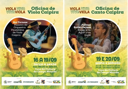 O Instituto São José de Viola Caipira e a Orquestra Viola no Campo, através do "Projeto Viola Viva Viva Viola" (Lei Rouanet), trazem a Campo Mourão as oficinas de viola caipira e de canto caipira. Para a viola, podem participar iniciantes, intermediários ou avançados. Serão quatro dias de curso, quatro horas por dia. Para o canto serão dois dias, também com quatro horas cada.