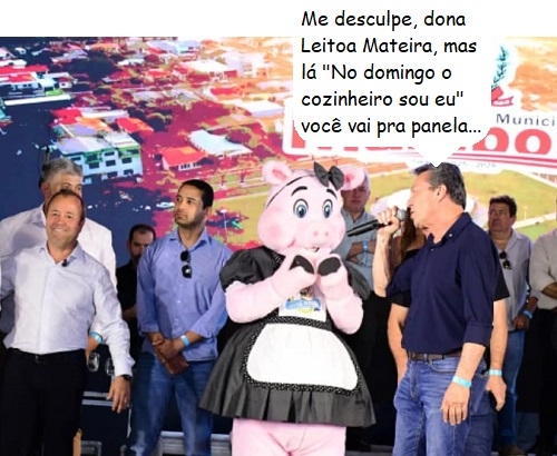 O clic é do 19ª Festa a Leitoa Mateira, domingo, em Mamborê. O secretário de Estado Márcio Nunes (Agricultura), discursa ao lado da mascote do evento. Nunes faz sucesso em redes sociais com um quadro culinário. A festa também teve as presenças dos secretários Beto Preto (Saúde) e Leonaldo Paranhos (Turismo), além de vários prefeitos da região.