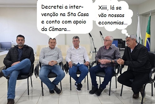 O clic é desta quinta-feira, em Goioerê, onde o prefeito Pedro Coelho anunciou logo pela manhã o decreto de intervenção na Santa Casa da cidade. Coelho disse que conta com recursos de R$ 1 milhão da Câmara para ajudar na crise financeira do hospital. O presidente do legislativo, Joaquim da Ambulância, acompanhou de perto, com direito a “olhar desconfiado”...