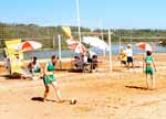 E quem disse que Campo Mourão não tem praia? Olha aí as duplas jogando ontem no vôlei de praia dos Jojup´s. Tem areia, tem água no fundo (repare bem) e tem até guarda-sol, olha aí (foto). Incrível! Aliás, no feminino, Campo Mourão venceu as duas partidas e está classificada. Já os meninos perderam as duas e caíram fora já no primeiro dia. Ah, essa não era a “praia” deles...