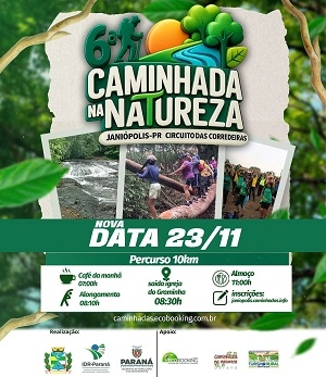 Acontece no próximo domingo (8h) a 6ª Caminhada Internacional na Natureza de Janiópolis.