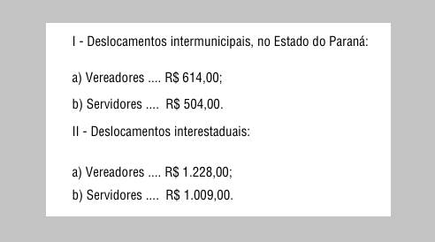 Para vereador, a diária dentro do Estado pulou de R$ 560 para R$ 614.