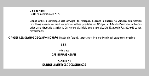 A prefeitura de Campo Mourão poderá licitar serviços de remoção, depósito e guarda de veículos recolhidos.