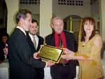 O presidente da Santa Casa, Dilmar Daleffe, recebeu ontem à noite o título de Cidadão Honorário de Campo Mourão (foto). Proposta foi dos vereadores José Turozi e professor Idê. Dos 17 “nobres edis”, aliás, 13 estavam presentes. Turozi e Idê, como inseparáveis que são, se juntaram até na hora do discurso. Cada um falou um pouco sobre o homenageado. Se duvidar, contaram até os toques das falas...