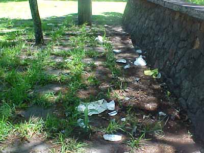 Responda rápido: qual foi a última vez que alguém deu uma limpada na praça Caetano Munhoz da Rocha, a popular “praça do Fórum”? Faz tempo, hein. Aquilo tá que é uma sujeira só. São copos plásticos, embalagens de refrigerantes, papéis, plásticos, sobras de marmitex, folhas e galhos de árvores, enfim, tem de tudo para afastar o público de lá. Mas não é só limpeza que falta, não. A grama não sabe o que é um corte há muito tempo e hoje toma conta das calçadas. Ela cresceu sobre as calçadas e não dá mais para saber onde é passagem de pedestre e onde é jardim. Ah, quem conseguir desviar do lixo já poderá se dar por satisfeito...