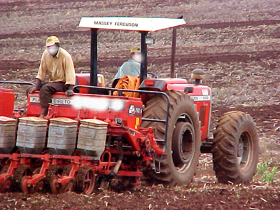 Olha só o flagrante de displicência no trabalho na zona rural. O agricultor vai sentado sobre o implemente agrícolo, num perigo danado. Dados da 11ª Regional de Saúde de Campo Mourão indicam que, em 2001, duas pessoas morreram em acidentes com máquinas agrícolas. Este ano já aconteceram outras duas mortes, a última em Campina da Lagoa, há menos de um mês, quando um operador de colheitadeira morreu enquanto regulava a máquina. Por trabalharem isolados, quase sempre sozinhos, os trabalhadores ficam condenados a não terem ajuda no caso de acidentes. E o problema não é “apenas” o óbito. Segundo a Regional de Saúde, em 2001 foram registrados dois casos de amputações na região e, este ano, esse número já saltou para três. Ah, isso é sinal que o povo da roça também curte uma adrenalininha de vez em quando...
