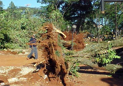 Olha aí mais um clic da semana de “devastação” na praça Getúlio Vargas. Depois que várias árvores foram derrubadas na sexta-feira, ontem foi dia de “picotá-las”. E dê-lhe ronco de moto-serra no centro de Campo Mourão. Tinha até caminhão da prefeitura puxando a lenha. Tá certo que a madeira fica com o município, mas experimente você pagar para um particular (leia-se Domingão) para cortar uma árvore pública (com autorização, é claro) para ver se aparece alguém para recolher os troncos. Pode telefonar, espernear, prometer votar na oposição que não adianta. Mas isso sempre foi assim: o contribuinte é quem “leva o pau”...