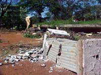 O coreto, que aparece ao fundo, à direita, e o chafariz, à esquerda, não deixam a gente mentir. Essa aí é a praça Getúlio Vargas, no centrão de Campo Mourão. Depois da derrubada de árvores na sexta e no sábado e do corte e recolhimento dos troncos, foi assim que ficou o visual do espaço mais nobre da cidade. E vai ter mais: aquelas árvores ao fundo também serão cortadas. Quem passa por ali tem a sensação de estar no centro de Bagdá após os bombardeios do Bush (urgh!). Tudo isso, porém, estava previsto no projeto, que passou até por audiência pública. Só uma dúvida: as “moças” que faziam ponto por ali, têm direito a indenização por suspensão de faturamento?...