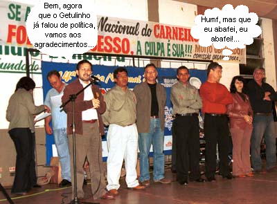 Olha aí o prefeito Tauillo Tezelli discursando ao lado da comissão organizadora da 14a Festa Nacional do Carneiro no Buraco no jantar de confraternização realizado na sexta-feira. Cerca de 800 pessoas, representando as entidades e órgãos envolvidos na festa, imprensa, patrocinadores, órgãos públicos e integrantes de equipes de apoio estiveram presentes. Segundo Tezelli, o sucesso se deve ao envolvimento da comunidade e que a festa não é da prefeitura e sim de Campo Mourão. Aliás, o prefeito falou por último e nem precisou tocar em política. O vice Getulinho Ferrari fez muito bem isso antes do chefe. Não é mesmo, Getulinho?...