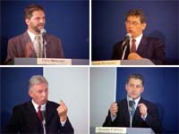 No último debate da campanha eleitoral, os quatro prefeitáveis de Campo Mourão voltaram a usar frases que não pegaram muito bem. Osni disse que a prefeitura precisa ajudar os pobres porque rico honra seus compromissos e não atrasa suas contas. Valdete Rodrigues frisou que rico não deve pagar mais impostos só porque é rico e que o sistema deve ser igual para todos. Nelson Tureck, que votou favorável à venda da Copel, criticou a prefeitura por ter vendido as ações da empresa. Douglas Fabrício acabou admitindo que a atual Secretaria da Agricultura é fraca ao dizer que vai fortalecer a pasta. Ah, já que é assim, estão todos quites...