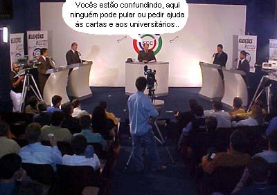 O debate que a TV Carajás promoveu na sexta-feira deve ter feito com que os quatro prefeitáveis de Campo Mourão morressem de inveja dos participantes do “Show do Milhão”. É que no programa do Sílvio Santos há opções de pular perguntas indesejadas ou pedir ajudar às cartas, aos universitários e aos convidados. Sem essas “mãozinhas”, cada prefeitável se virou como pôde. Foi um tal de mudar de assunto e de fingir que não entendeu a pergunta que não tinha fim. Em resumo, o debate foi mais para “Big Brother” do que para “Show do Milhão”. É que em 3 de outubro tem paredão. E sem direito a convite da revista G aos eliminados...