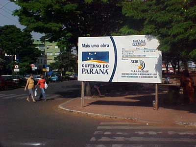 Tudo bem que o governo do Estado queira mostrar que as obras de revitalização das praças centrais de Campo Mourão são financiadas pelo Paraná Urbano, mas precisava ter colocado a “plaquinha” bem no meio da calçada, atrapalhando a passagem dos pedestres? O clic é da esquina da av. Irmãos Pereira com a rua Harrison José Borges. A obra já terminou por ali, mas a placa ficou, para desespero dos pedestres que precisam desviar pela rua. Ah, como diria Drummond: tem uma placa no meio do caminho, no meio do caminho tem uma placa...
