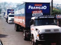 E estrutura de campanha é o que não falta para esses deputados federais. Hermas Parcianelo, o “Frangão”, que é de Cascavel, chega a desfilar pela região com cinco carretas. São cinco carretas mesmo (foto), todas padronizadas com o seu nome. Odílio Balbinoti, de Maringá (já foi prefeito de Barbosa Ferraz, é verdade) também tem seus caminhõezinhos. E nóis querendo encarar os homi...