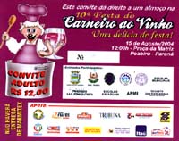 As vendas dos convites da Festa do Carneiro ao Vinho (foto), em Peabiru, seguem a todo vapor. Em Campo Mourão tem na Fiorella. Preço: R$ 12. Agora, se você não tem dinheiro ou é sortudo, clique aqui porque Boca Santa vai sortear 10 convites (dois para cada sorteado). Basta deixar seu nome e um telefone para contato. Sorteio será na sexta-feira, 13. De agosto! Se você não ganhar, é dia do azar mesmo...