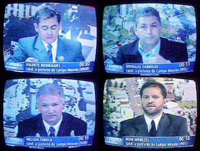Olha os quatro candidatos a prefeito de Campo Mourão aí, gente! Para quem anda reclamando que a campanha anda devagar, quase parando, o debate de ontem à noite da TV Tarobá foi um alívio. Os quatro compareceram, apesar de terem que se deslocar até Cascavel. E até que foi divertido. Só as más línguas é que não perdoaram: disseram que no mesmo horário tinha “Sexo frágil” na Globo e “sucessão frágil” na Band...